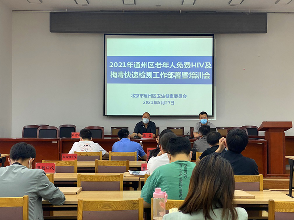 艾滋病是一种严重危害人类健康的传染病,目前通州区艾滋病疫情形势依然严峻。为进一步推动我区在预防艾滋病宣传教育领域、艾滋病综合干预领域、艾滋病扩大检测和治疗领域的相关工作,探索解决防治工作重点和难点问题,形成符合通州区特点的有效防治模式,5月27日,区卫健委召开了2021年通州区老年人免费HIV及梅毒快速检测工作部署暨培训会。辖区18家社区卫生服务中心将在区疾控中心的指导下,按照《通州区社区卫生服务中心老年人免费HIV及梅毒快速检测工作方案》开展相关工作。卫健委公共卫生科负责人张猛、区疾控中心性艾所负责人李震及梨园、永顺、马驹桥、张家湾等十八家社区卫生服务中心相关领导及工作人员参会。