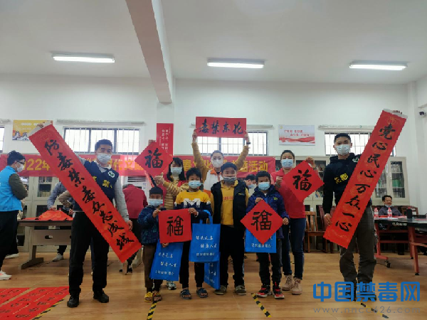 中国禁毒网讯 2022年春节即将来临,在辞岁迎新之际,1月19日,广州市花都区花东镇禁毒办联合镇宣传办在高溪村文化活动中心开展以“迎新春、齐禁毒、送春联、送祝福”为主题的禁毒宣传活动。