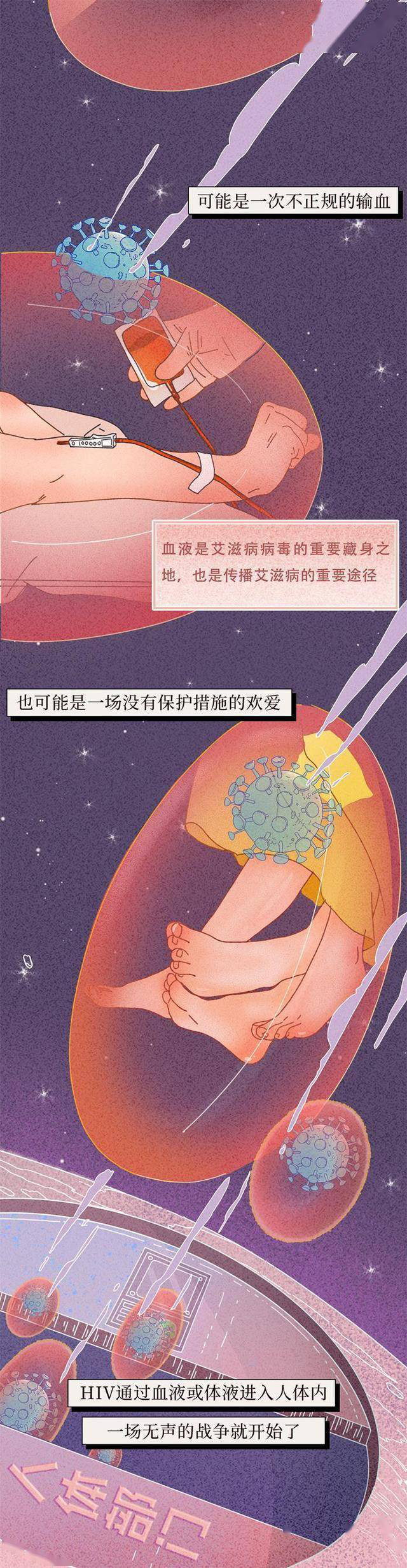 那么人为什么会得艾滋病,艾滋病病毒究竟是如何在人类之间传播的接下来来通过一组漫画为大家揭晓。