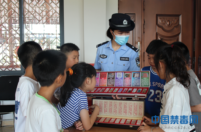 图为民警向青少年展示毒品仿真模型。中国禁毒网发