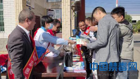 禁毒志愿者们通过在园区入口摆放毒品模型、禁毒宣传展板、张贴“关于开展清源断流行动核查入滇制毒物品的通告”、发放禁毒宣传资料、现场讲解等方式,为园区从业人员普及毒品种类、毒品危害、毒品违法犯罪后果及举报奖励办法等禁毒知识。