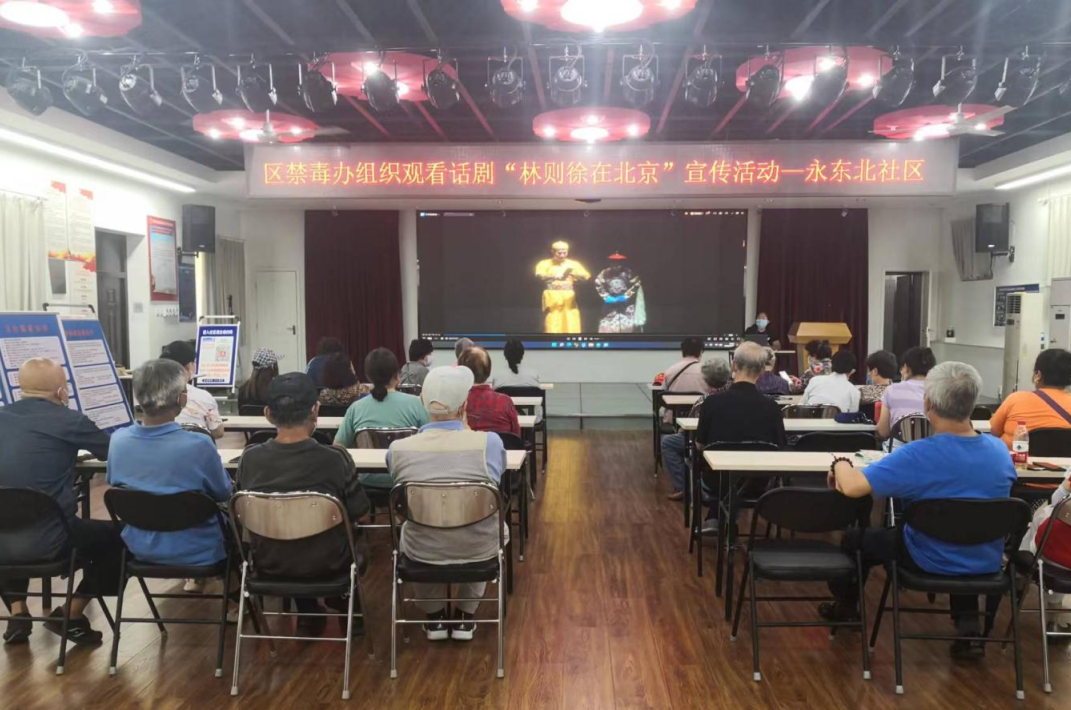 为进一步加大禁毒宣传力度,有效提高辖区居民识毒、防毒、拒毒的意识和能力,八宝山街道向日葵社区工作人员走进社区组织群众开展观看禁毒曲剧《林则徐在北京》活动。观影期间,工作人员还向大家发放了禁毒宣传手册、禁毒宣传品,让广大群众充分认识到了毒品的危害性,营造了浓厚的社区禁毒氛围。
