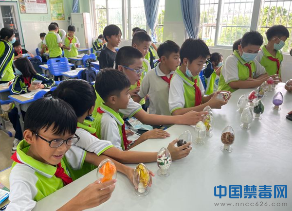 活动中,禁毒社工向学生讲解毒品特征、种类以及危害性,并强调了新型毒品的伪装性。同时,还发放宣传折页、播放视频案例、展示毒品仿真模型,为学生展示吸食毒品以后身体所发生的变化,切实提高学生对毒品的辨别意识和能力,充分认识毒品对人体所带来的巨大伤害。课后,天涯区禁毒办工作人员和禁毒社工还在学校附近的市场发放禁毒宣传折页,扩大禁毒宣传影响力。