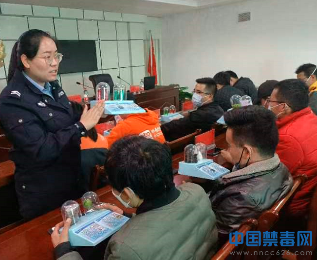 图为民警向寄递物流行业负责人讲解禁毒知识。中国禁毒网发