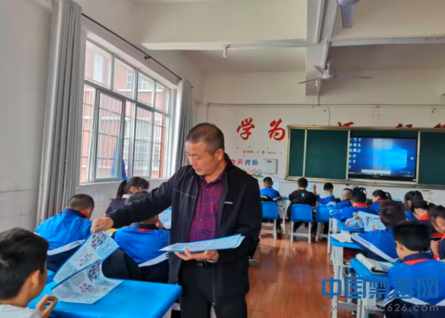 图为讲解员向学生发放禁毒宣传单。中国禁毒网发