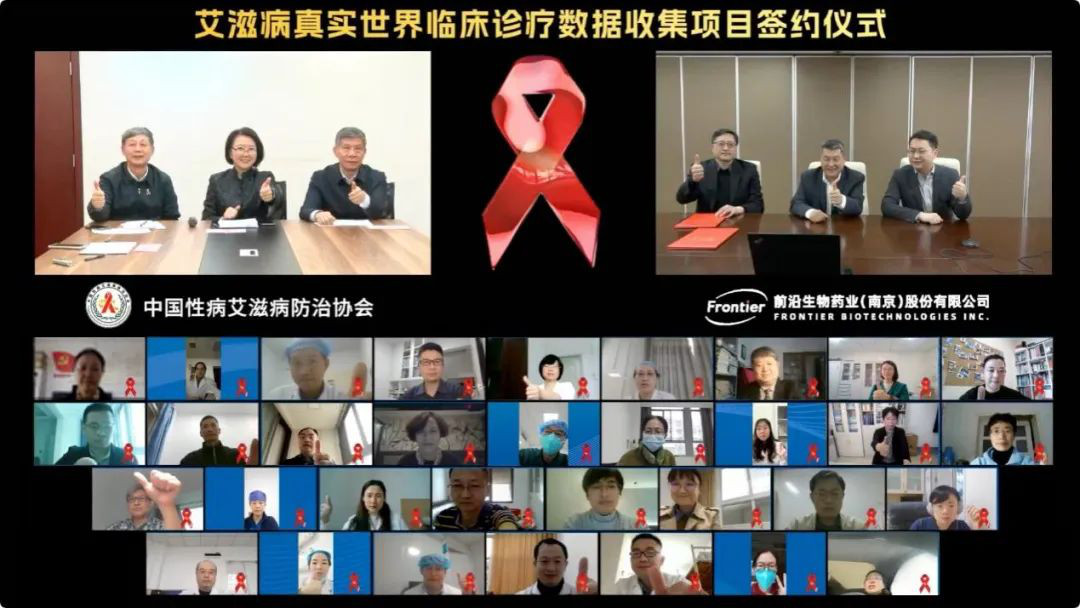 “共抗艾滋,共享健康”,值此第35个世界艾滋病日来临之际,中国性病艾滋病防治协会(以下简称“中艾协”)和前沿生物药业(南京)股份有限公司(以下简称“前沿生物”)于11月29日再次携手,签署了《艾滋病真实世界临床诊疗数据收集项目》合作协议。中艾协会长郝阳,副会长兼秘书长王新伦,副会长、中国疾控中心艾防中心主任韩孟杰,前沿生物董事长谢东、总经理王昌进,以及来自全国36家艾滋病定点医疗机构的项目负责人共同参加了线上签约仪式。会议由王新伦秘书长主持。