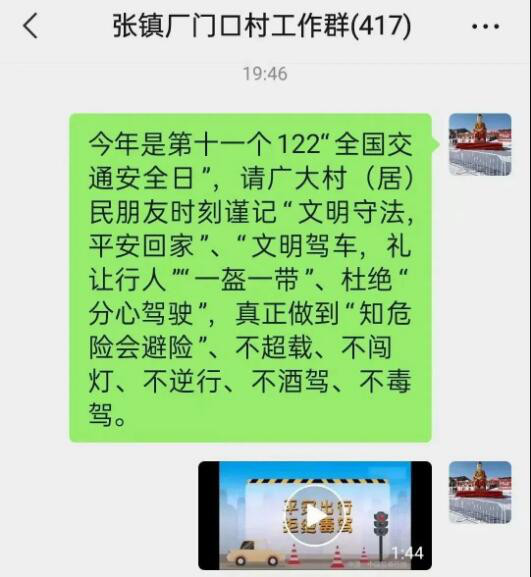 为了加大文明出行宣传力度,特别是对毒驾危害的认识,张镇平安建设办开展以“平安出行,拒绝毒驾”为主题的线上宣传活动。工作人员在各村居微信群转发“平安出行,拒绝毒驾”宣传视频,使广大群众对毒驾的危害性、相关法律法规等有了更加深入的了解,增强了“珍爱生命,拒绝毒品”的禁毒意识。