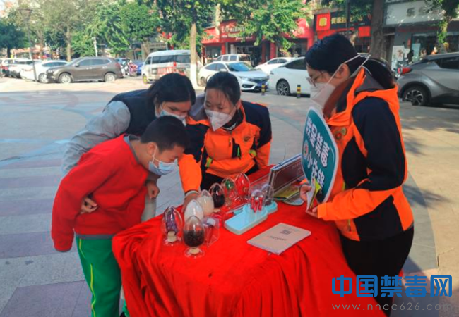 活动中,禁毒专干和禁毒社工现场设置禁毒摊位,向来往群众派发禁毒宣传单张、展示毒品仿真模型,介绍禁毒知识,着重宣传毒品的对社会、家庭、个人的危害、如何抵制毒品、防范新型毒品等内容。同时,提醒居民朋友一定要提高警惕,要从我做起、远离毒品、珍爱生命,不让毒品进家门。