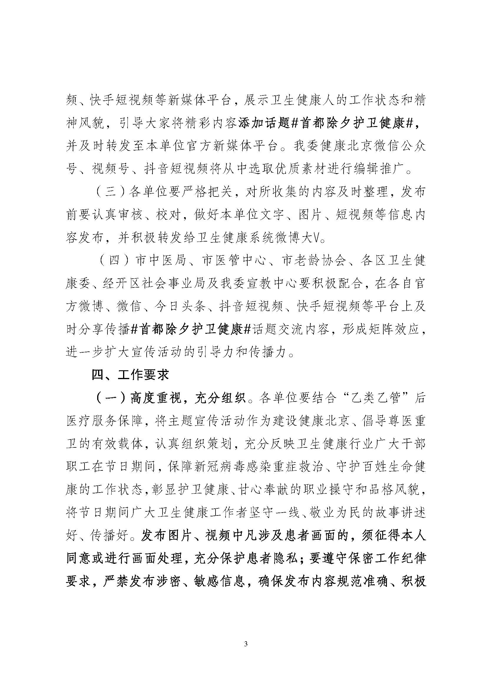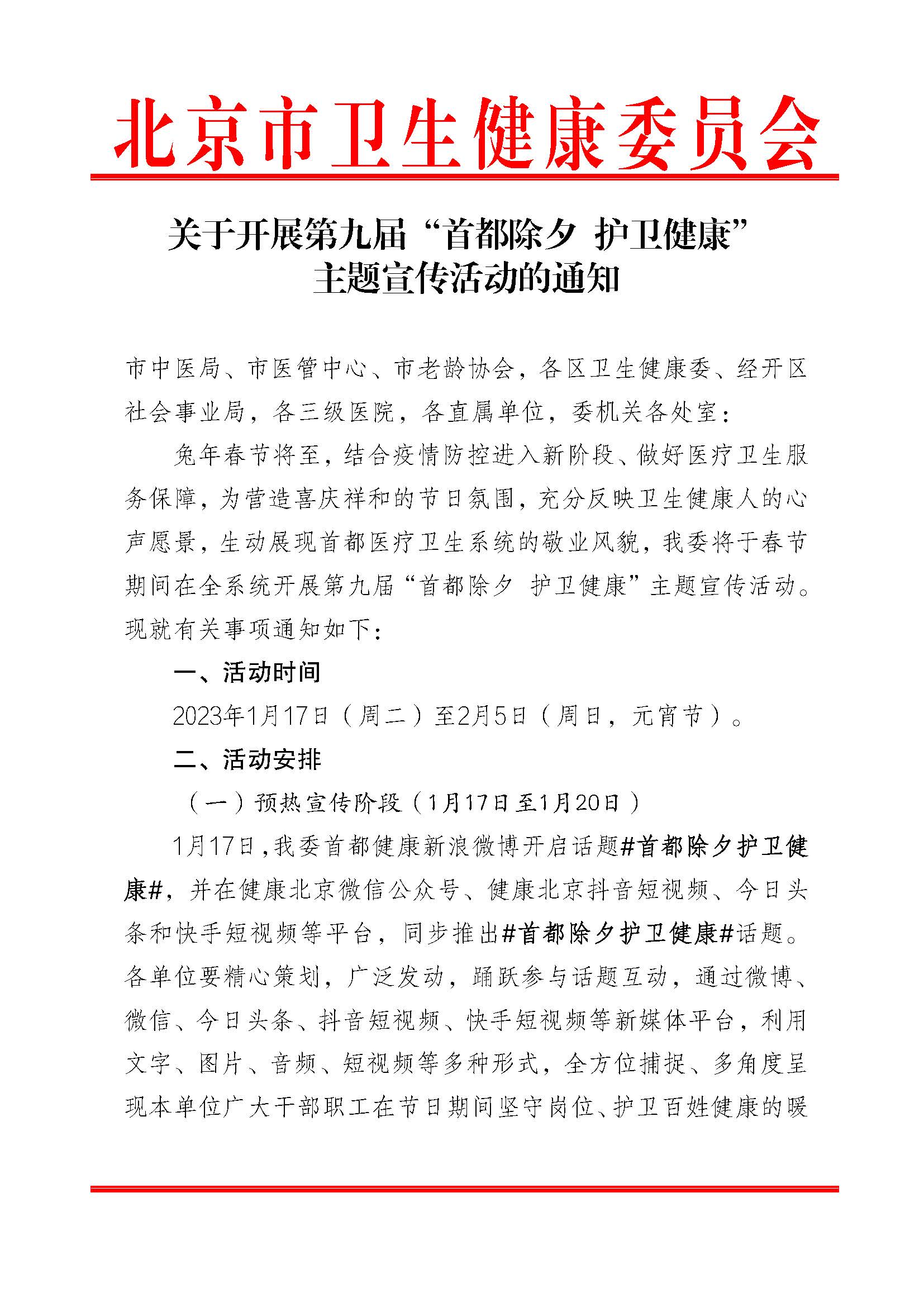 关于开展第九届“首都除夕 护卫健康”主题宣传活动的通知