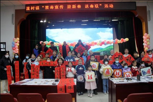 流村镇禁毒领导小组办公室联合镇市民活动中心、北企公司禁毒领导小组办公室在流村镇活动中心组织开展以“禁毒宣传、迎新春、送春联”为主题的禁毒普法宣传活动,书法家们挥毫泼墨,用多种字体书写了100多副春联和福字,并送到了村民手中。在送春联过程中,禁毒社工也向村民们科普了预防毒品危害的重要性及识毒、拒毒的方法,告诫广大村民一定要增强起自觉远离、抵制毒品的意识,和家人们一起过一个健康、祥和、无毒的春节。