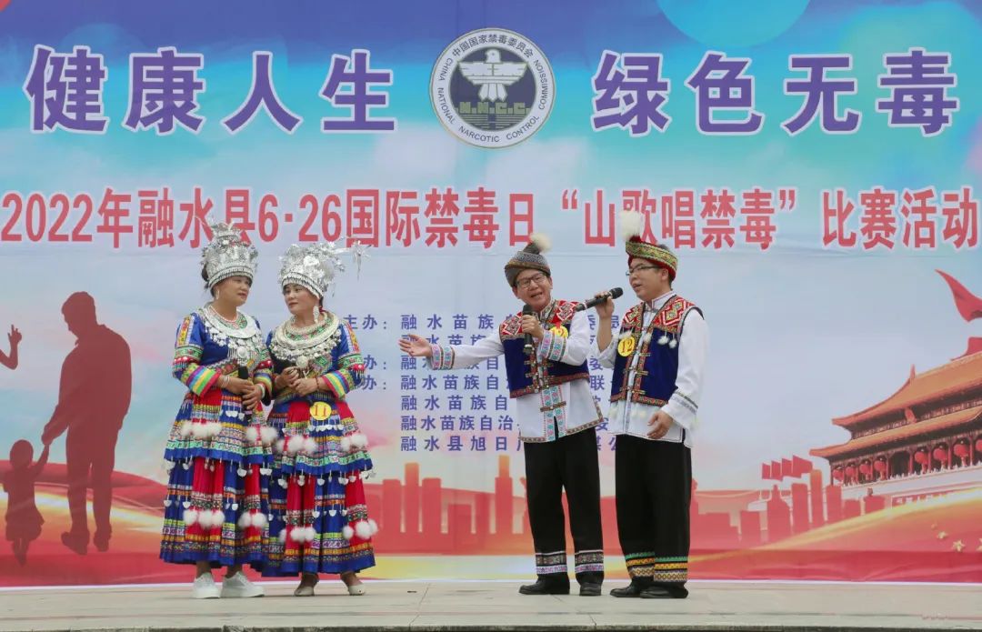 为了提升全民禁毒意识,将禁毒知识传唱万家,融水把禁毒宣传教育放在首位,通过文化创新,将山歌这一非遗文化与禁毒宣传相结合,组织具有民族特色的“山歌唱禁毒”比赛等活动1500多场次。