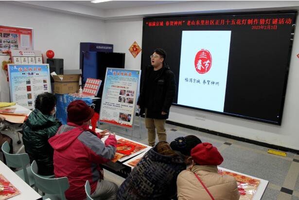 老山街道老山东里社区组织居民自制灯笼、做元宵、猜灯谜的同时,为了进一步增强辖区居民禁毒、防毒的意识,老山街道向日葵社区工作人员也到场向参加活动的群众发放禁毒手册和禁毒宣传品,引导大家关注禁毒微信公众号、学习禁毒知识,并为大家介绍毒品的种类、如何辨别毒品、毒品的危害等知识,呼吁广大居民珍惜生命,远离毒品,营造了共同预防毒品的良好氛围。