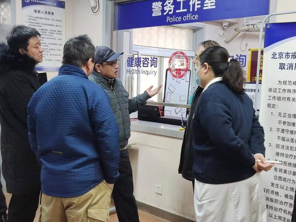 2023年2月21日,北京市禁毒办警官郑斌、尹雪峰、北京市药品不良反应中心郝君、北京市疾病预防控制中心性艾所刘国武一行对丰台区戒毒药物维持治疗工作及第七门诊进行了工作督导。丰台区卫生健康委疾控科科长奚滕滕、疾控中心副主任常利杰、性艾科科长李彦奇、区市场监督管理局科长李丽娜、区禁毒办禁毒大队警官蒋海涛、石榴园派出所副所长聂轶旸、蒲黄榆社区卫生服务中心书记常青、石榴园分中心主任王明辉、美沙酮门诊负责人胡翠华等人迎接了本次督导。
