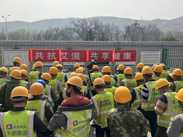 为了大力宣传传染病的防控工作,2023年3月30日上午,门头沟区疾控中心防病宣传志愿者走进京能集团西山印项目工地,进行了“共抗艾滋 共享健康”为主题的宣讲活动,此项目工地属于中度规模,有建筑工人800多人,工人大多来自于辽宁、内蒙古和四川。项目工地施工工作一般会持续2-3年,建筑工人远离家乡,长期在外生活,与伴侣分离,存在不安全性行为的隐患,是预防性病、艾滋病重点关注的人群之一。