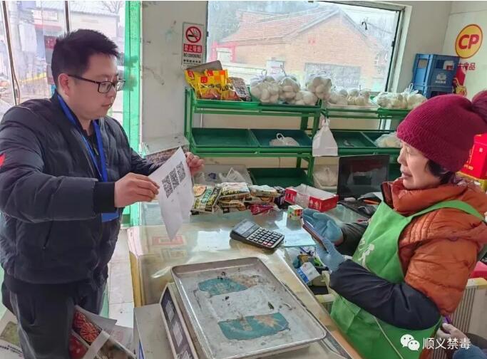 高丽营镇禁毒工作小组在张喜庄市场开展禁毒宣传进商铺活动,禁毒社工深入走访各个商户,细心地向各商户经营者及群众讲解毒品的危害、毒品的种类等知识,告知群众应全面提高自身防范意识,树立参与禁毒斗争、共同抵制毒品的正确观念,进一步增强了辖区商铺经营者及群众的防毒、拒毒和禁毒意识,营造了全民禁毒的良好社会氛围。