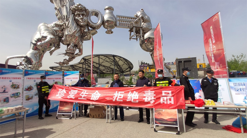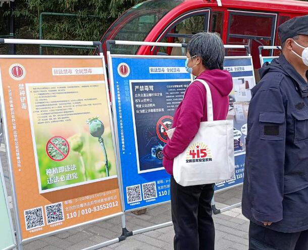 海淀公安分局联合万寿路街道在五棵松华熙商业中心北广场举办2023年度“4·15全民国家安全教育日”及禁毒宣传活动,通过现场咨询、发放禁毒宣传折页、摆放宣传展板、电子屏滚动播放禁毒宣传短片等多种方式,工作人员向参加活动的群众科普禁毒知识,引导大家关注“北京禁毒”“海淀禁毒”微信公众号,自觉学习新型毒品及其危害、禁毒法律法规等知识,营造了浓厚的全民禁毒氛围。