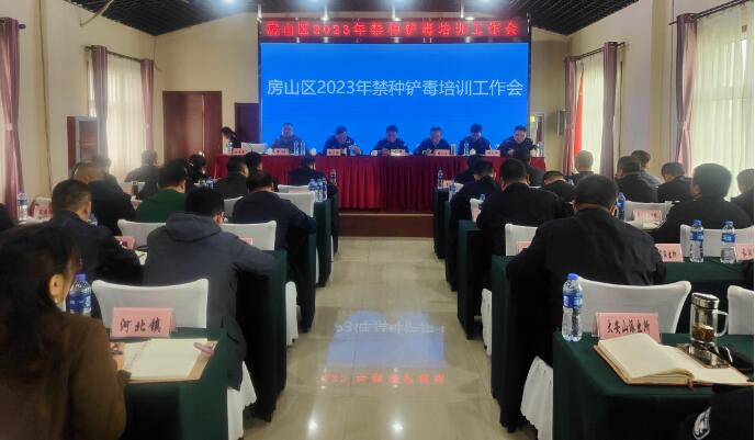 房山区举办2023年禁种铲毒工作培训会。市禁毒办副主任、市公安局禁毒总队副总队长刘辉,区禁毒委副主任、禁毒办主任、区委政法委分管日常工作的副书记李文亮出席,开班仪式由房山公安分局副局长孙大鹏主持。