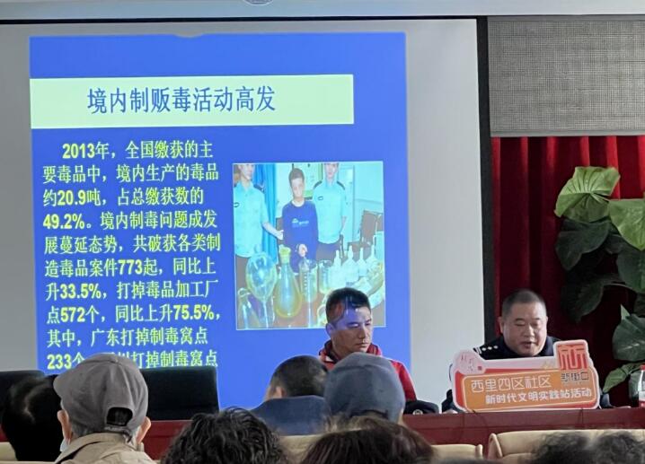 牛街街道南线阁社区开展禁毒宣传活动,社区民警结合播放的宣传短片,为参加活动的群众讲解毒品原植物的外观特征以及对人体的危害,动员社区居民主动担起禁种铲毒责任,积极检查周边地区,一旦发现社区有非法种植、自然生长的毒品原植物,一定要及时报告给公安机关,绝不能让毒品原植物生根发芽,取得了良好的宣传成效。
