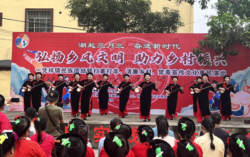 凭祥市禁毒办以凭祥镇柳班村举办的“弘扬乡风文明 助力乡村振兴”的“三月三”民俗活动为契机,积极开展“健康人生,绿色无毒”为主题的禁毒宣传教育活动。