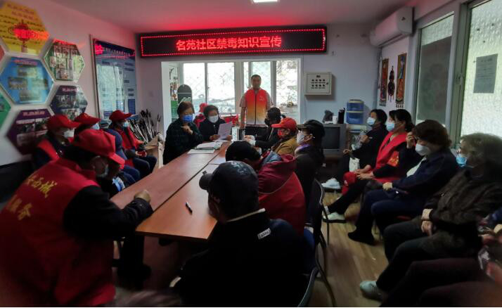 大栅栏街道禁毒工作站联合延寿街社区开展禁毒宣传活动,禁毒专职社工及工作人员向来往居民发放禁毒宣传手册,为大家讲解毒品的种类与危害、防范毒品侵害的方法等禁毒知识,要求大家一定要坚决抵制吸毒等涉毒违法犯罪行为,共同筑牢禁毒防线。