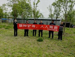 通州区西集镇禁种铲毒踏查小组组织开展禁种铲毒踏查活动,工作人员深入潮白河沿岸、树林、重点地块进行地毯式排查,每到一处都仔细辨别,确保不漏一处死角,并在树林中悬挂禁种铲毒宣传横幅,向过往群众发放禁毒宣传资料,讲解“种毒违法、种毒必铲、种毒必究”的禁种知识及毒品的危害性,营造了浓厚的依法禁种氛围。