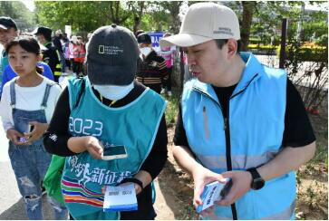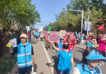 8点半,活动启动仪式在全场万人热舞健身操中拉开帷幕,1万余名长走爱好者健步如飞,区禁毒办工作人员则沿道路一侧依次排开,向长走人群和群众讲解禁毒知识,引导群众关注中国禁毒、北京禁毒微信公众号,鼓励大家在线自主学习禁毒知识。