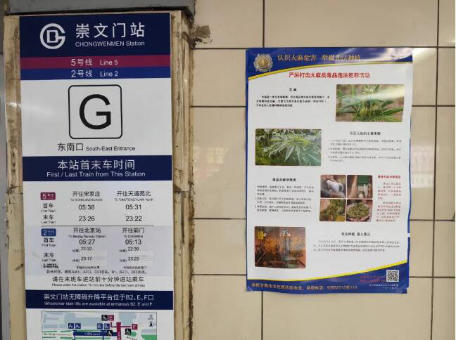 崇外街道禁毒社工在辖区地铁五号线、二号线人流量较大的崇文门站出入口处张贴禁毒宣传海报,向过往行人宣传毒品的种类与危害等禁毒知识,营造了全民禁毒的浓厚氛围。
