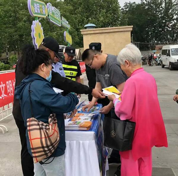 小关街道平安办以“全国防灾减灾日”为契机,联合东外交通大队,组织社区民警、禁毒专职社工、禁毒志愿者在华堂商场门口开展以“珍爱生命、拒绝毒品”为主题的禁毒宣传活动,工作人员通过设置禁毒知识展架、派发禁毒宣传资料等形式,向广大居民群众宣传普及《国家安全法》《禁毒法》《北京市禁毒条例》等相关法律法规以及什么是毒品、毒品的危害、怎样识别毒品、如何远离毒品等知识,呼吁大家将学到的禁毒知识传递给家人、朋友、邻居,受到了居民群众的一致好评,达到了良好的禁毒宣传效果,掀起了禁毒宣传的新热潮。