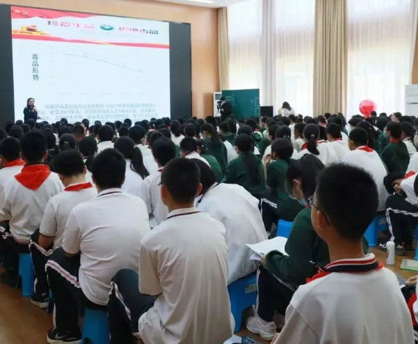 劲松街道联合北京市天康戒毒康复所走进陈经纶中学帝景劲松分校毓秀校区开展禁毒教育讲座,“蒲公英”宣讲团成员以图文并茂的形式,向同学们介绍什么是毒品、毒品的危害等知识。活动中,师生互动环节让同学们进一步了解了预防毒品侵害的方法,增强了识毒、拒毒的能力,同学们纷纷表示,要时刻关注身边事物,提高自我保护意识,抵制诱惑、远离毒品,共建人人识毒、防毒、拒毒、无毒的良好社会环境。