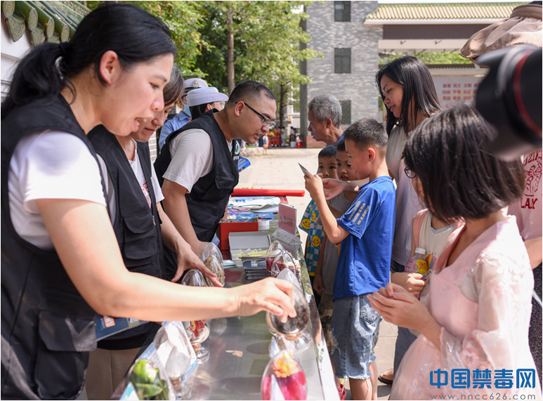 活动现场,负责人向群众派发禁毒宣传资料、讲解毒品知识,与群众互动,呼吁大家主动学习禁毒知识、积极参与禁毒活动。