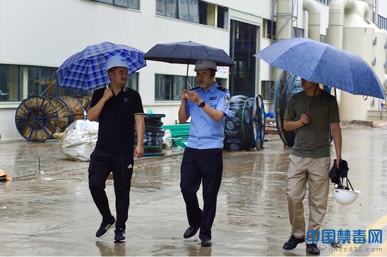 图为禁毒民警正在实地检查企业易制毒化学品储存设施。中国禁毒网发