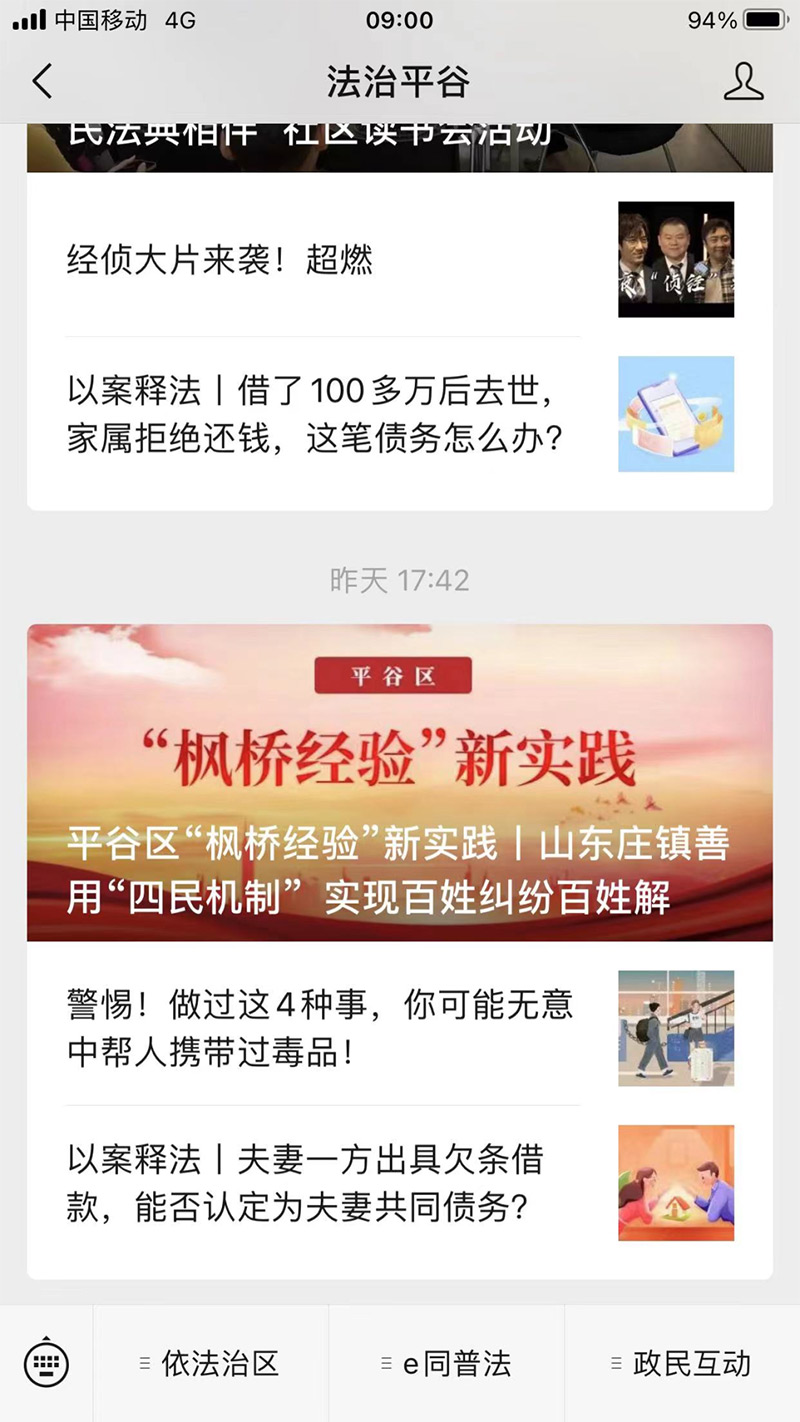 为进一步加大禁毒宣传工作力度,不断提升广大群众防范毒品的意识和能力,平谷区司法局充分发挥法治宣传教育职能优势,积极开展线上禁毒宣传教育活动,利用“法治平谷”微信公众号和“平谷法治”微博发布禁毒微电影《警惕!做过这4种事,你可能无意中帮人携带过毒品!》等推文,围绕毒品的种类与危害、如何辨识毒品、如何抵制毒品等方面进行文章推送,提醒广大群众注意新型毒品的伪装性,提升自身防范意识,有力扩大了禁毒宣传的覆盖面。