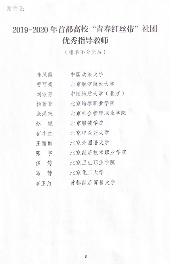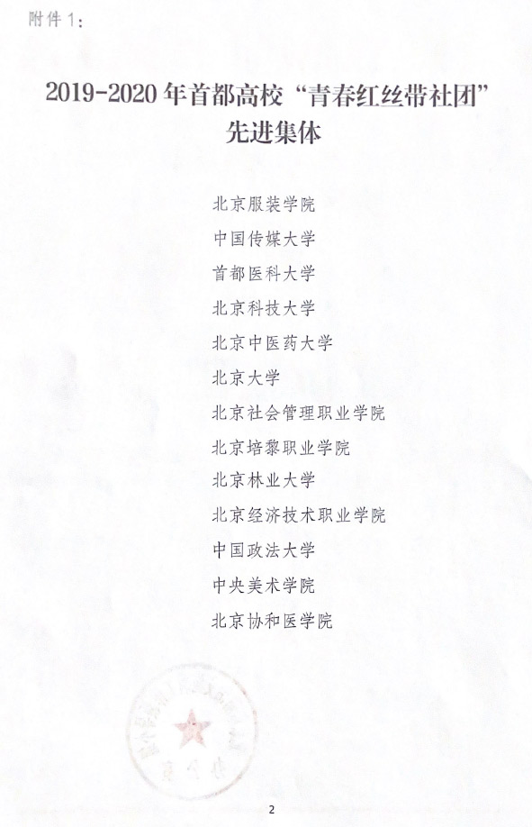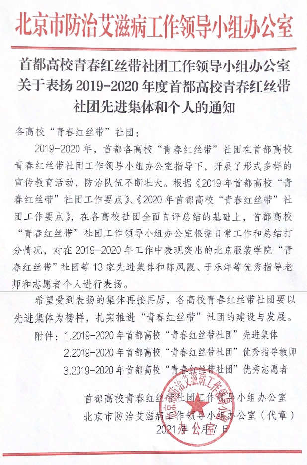 2019-2020年度首都高校青春红丝带社团先进集体和个人