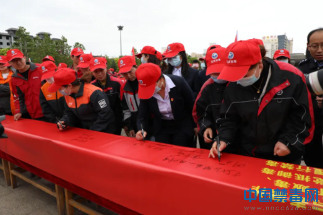 200名志愿服务队员和在场的200多名学生、群众在10米签名长卷上签上了自己的名字,誓为固原禁毒事业贡献力量。
