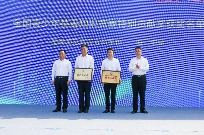 活动现场,公布了南通市青少年禁毒知识竞赛优秀组织奖,并为南通师范高等专科学校、海门中学颁发了特别贡献奖。在去年的全国青少年禁毒知识竞赛中,来自南通师范高等专科学校和海门中学的三名学生,一路过关斩将,从全国22万余所学校的9905万名学生中脱颖而出,进入全国总决赛,最终代表江苏队一举夺得总决赛冠军。