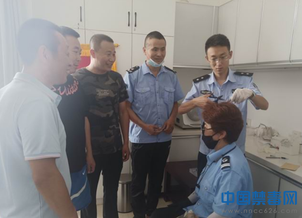 图为民警采集驾驶员毛发。中国禁毒网发