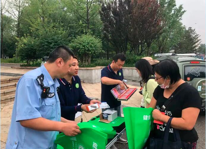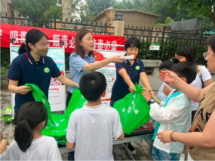 为能提高群众守法自觉和自我保护意识,结合近期开展的“夏季行动”,东城区禁毒办联合天坛派出所、天坛禁毒社工,在天坛西门、国家自然博物馆门前,分别组织开展两场禁毒宣传活动。民警将印有“健康人生 绿色无毒”条幅悬挂在醒目位置,向来往游客展示禁毒宣传展板。禁毒社工向居民发放禁毒宣传资料和禁毒宣传品,讲解仿真毒品模型,普及毒品常识,有效增强了广大群众的禁毒意识和拒毒能力,形成了共同预防毒品危害和全民自觉抵制毒品的浓厚氛围。