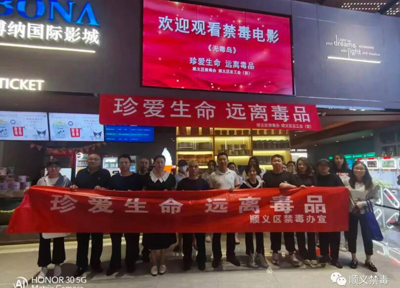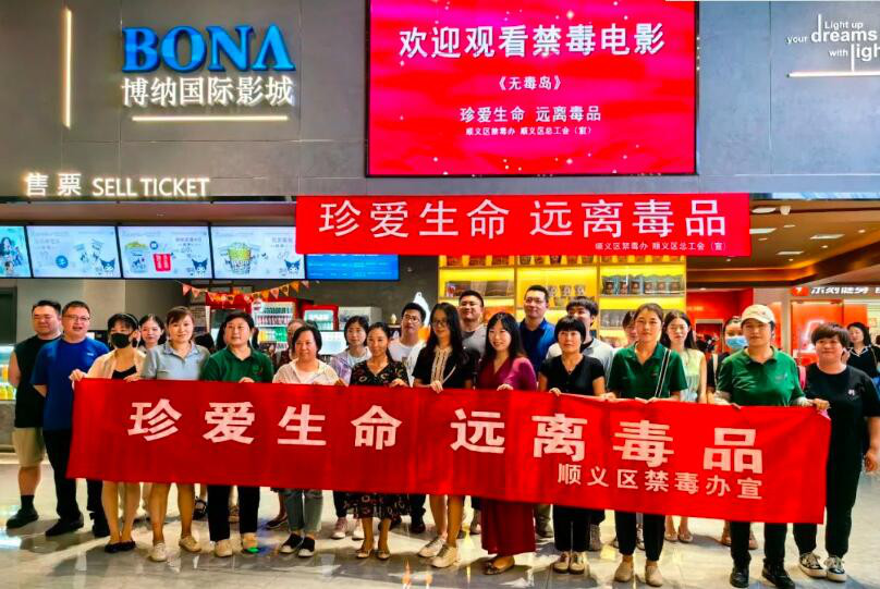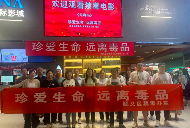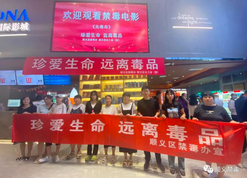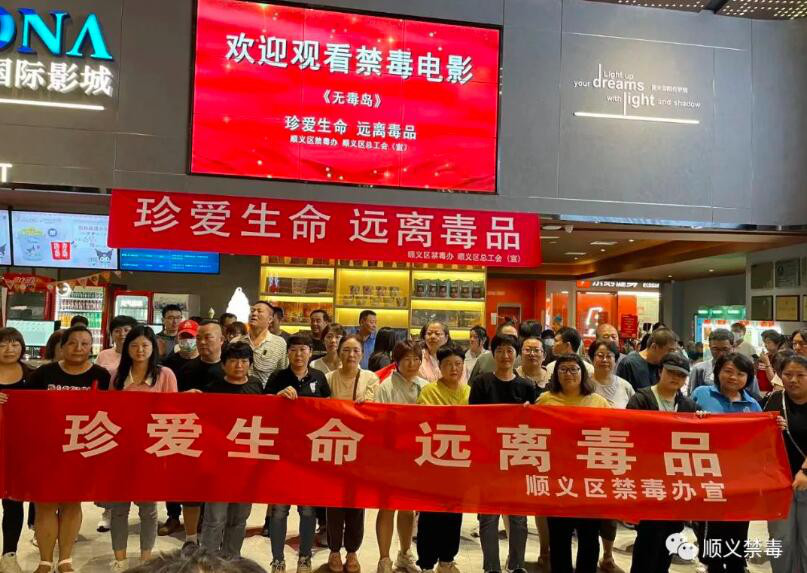 为大力宣传禁毒战线优秀事迹,进一步加强广大群众及机关干部职工的法治意识和禁毒观念,营造浓厚的社会禁毒氛围,顺义区禁毒办联合区总工会,组织各镇(街)及区禁毒委成员单位开展观看禁毒题材电影《无毒岛》活动。
