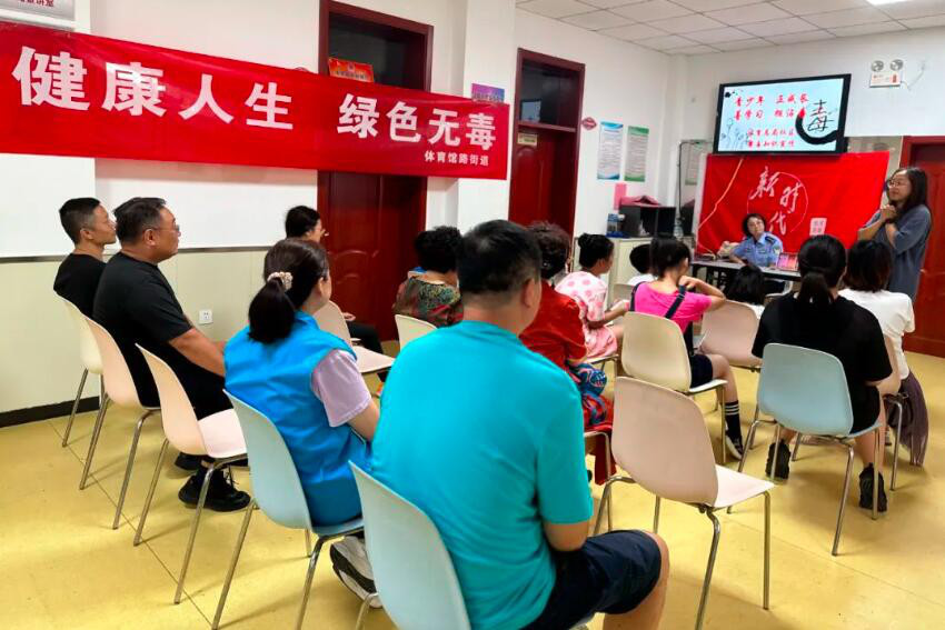 体育馆路街道联合北京市天康戒毒康复所、体育总局社区开展“健康人生 绿色无毒”青少年暑期禁毒宣传教育活动,社区中小学生及家长参加。活动分为现场讲解、互动体验及发放宣传品等环节,天康所警官通过现场讲述、播放图片和视频等方式,用生动的语言向学生及家长们介绍了毒品的种类与危害、防范新型毒品的技巧等知识,同学们积极回答问题,参与互动,在寓教于乐中掌握了毒品知识,增强了识毒防毒拒毒的意识和能力。