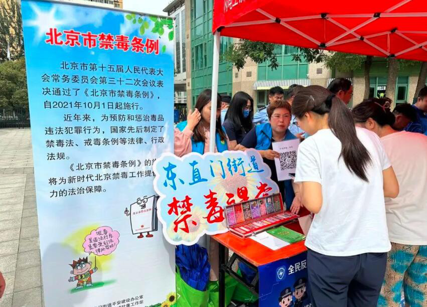 东直门街道在辖区东环广场开展禁毒反诈联合宣传活动,民警、禁毒社工以案释法,向在场群众生动地介绍了毒品对社会、家庭及个人造成的严重危害,普及了识别和防范新型毒品的方法,鼓励广大群众积极参与禁毒斗争,向公安机关举报涉毒违法犯罪线索,告诫大家要增强防范意识,坚决抵制毒品,切实提高了广大群众的识毒、防毒、拒毒意识,营造了人人远离毒品、人人参与禁毒的良好社会氛围。