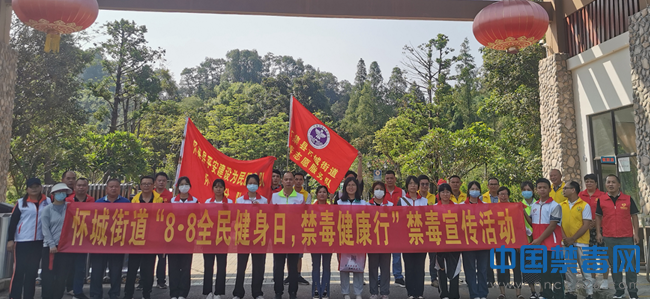 中国禁毒网讯(通讯员杨秋明 梁诗华)为进一步加大禁毒宣传力度,促进禁毒示范街创建工作顺利有序推进并取得实效,广东省肇庆市怀集县怀城街道在怀集植物园开展以“8·8全民健身日,禁毒健康行”为主题的禁毒宣传活动。