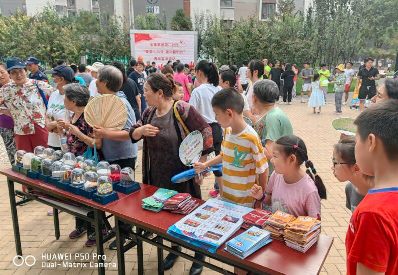金盏乡平安办联合金盏嘉园第二社区组织开展以“健康人生 绿色无毒”为主题的禁毒宣传进社区活动,工作人员通过设立禁毒宣传台,悬挂禁毒宣传条幅,摆放禁毒宣传展板、毒品仿真模型,发放禁毒宣传折页、禁毒知识手册和揭露新型伪装毒品真面目的宣传画等禁毒宣传资料,现场参与活动的人群陆续被禁毒宣传活动吸引过来,参与禁毒知识有奖答题,参观毒品仿真模型,进一步激发了社区居民群众参与禁毒斗争的积极性,营造了浓厚的社区禁毒氛围。