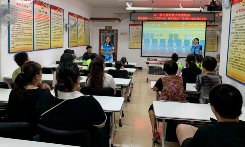 天南街道禁毒工作领导小组办公室走进东一社区,组织社区青少年开展毒品预防宣传活动。禁毒社工通过PPT,生动形象地展示了毒品从原植物发展到合成毒品的过程,让孩子们认识了毒品原植物罂粟,了解到了种植罂粟属于违法行为,还给同学们详细介绍了禁毒防毒相关知识,使大家明白了什么是毒品、合成毒品与“笑气”的危害等。在活动最后,禁毒社工请大家近距离观看毒品仿真模型,认清毒品的各种形态,提醒广大青少年要时刻保持警惕,提高防范意识,坚决拒绝毒品。