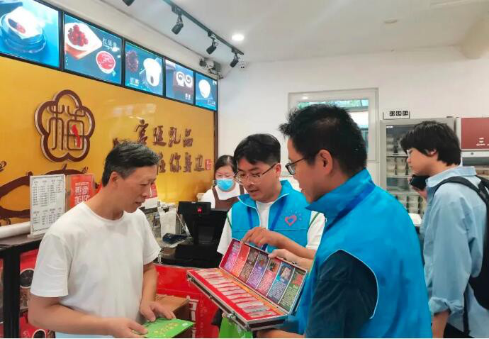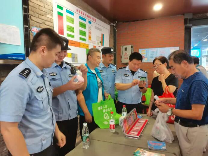 安定门街道联合国子监社区居委会,在国子监商业街开展“绿色人生 健康无毒”宣传活动,禁毒专职社工向商铺员工进行禁毒的相关知识宣传,结合发放的禁毒宣传资料,详细介绍毒品的种类、危害防范事项。活动中,禁毒社工与商户人员积极互动,有的提出问题,有的拿出手机拍照,大家纷纷表示,一定会时刻保持警惕,人人出力,人人参与,共同抵制毒品,切实加强了社区商户识毒、防毒、拒毒的意识和能力,为构建和谐无毒社会营造了良好氛围。