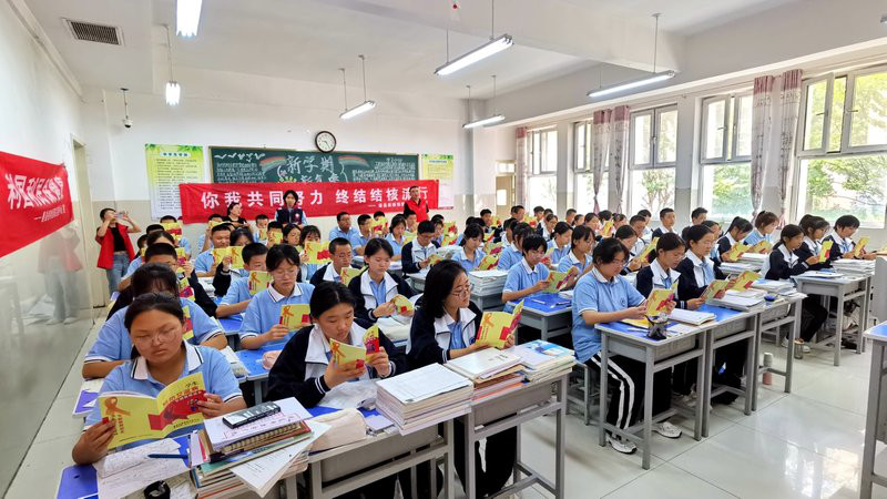 学生正在学习宣传手册知识宣传活动现场(邸世伟 摄)