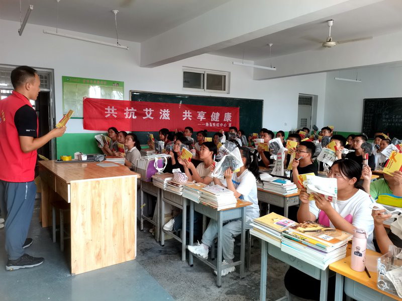 为进一步增强青年学生对艾滋病防治知识的了解,切实提高自我保护意识,有效遏制艾滋病在青年学生人群中传播,近日,河北省唐县疾控中心走进高中学校,分别对唐县第一中学、第二中学、田家炳中学、职教中心四所县域内高中的5000余名高一新生进行了艾滋病防治知识宣传。工作人员通过进校园、进教室、进军训场地与学生面对面发放宣传手册和宣传物品,并利用多媒体黑板讲解防艾课件,现场互动问答等形式直观地向高一新生宣传防艾知识。