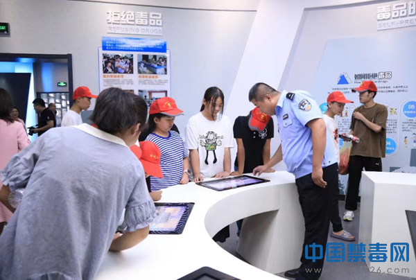 图为学生及志愿者参观禁毒教育预防基地。中国禁毒网发
