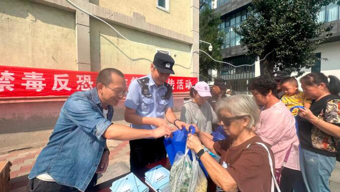 燕园街道平安建设办公室联合燕园派出所在蔚秀园社区举办禁毒宣传活动。现场悬挂禁毒主题横幅,摆放禁毒宣传展板,工作人员向群众分发宣传册、宣传单页,引导群众观看禁毒知识展板,为大家讲解毒驾的危险性等知识,使广大居民对禁毒知识有了更加全面的认识,进一步推动了群众对禁毒工作的关注与支持,营造了全民自觉抵制毒品的良好氛围。