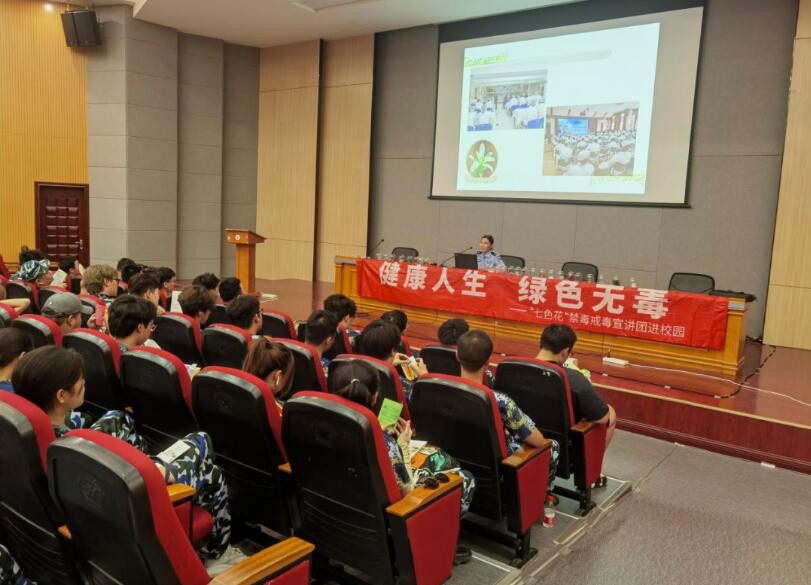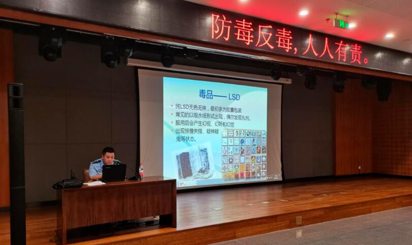 永顺镇平安建设办公室联合镇派出所、天堂河女子强制隔离戒毒所“七色花”宣讲团在北京物资学院本校开展“禁毒一堂课”活动。“七色花”宣讲团杨警官从毒品离你有多远、他(她)们是如何走上吸毒这条不归路的、你觉得预防毒品应该做些什么等方面入手,深入浅出地为同学们作了讲解,并列举与学生生活息息相关的例子,重点讲解了新型毒品是如何伪装的、应该怎样辨别毒品,提醒大家一定要增强自我防范意识,坚决远离毒品的同时,还要积极向身边亲友宣传禁毒知识,共同参与平安建设。此次活动营造了浓厚的校园禁毒氛围,进一步加强了禁毒宣传教育工作,为实现“无毒校园”提供了坚实的支撑和保障。