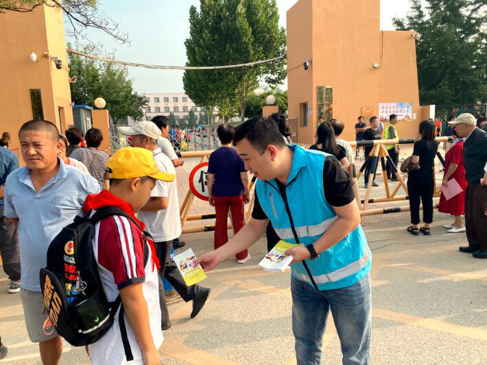 大安山乡组织禁毒专职社工和志愿者在大安山中心小学门口开展禁毒宣传活动,向前来报到的家长和同学们发放禁毒宣传折页,介绍新型毒品的种类、危害以及如何预防毒品等相关知识。